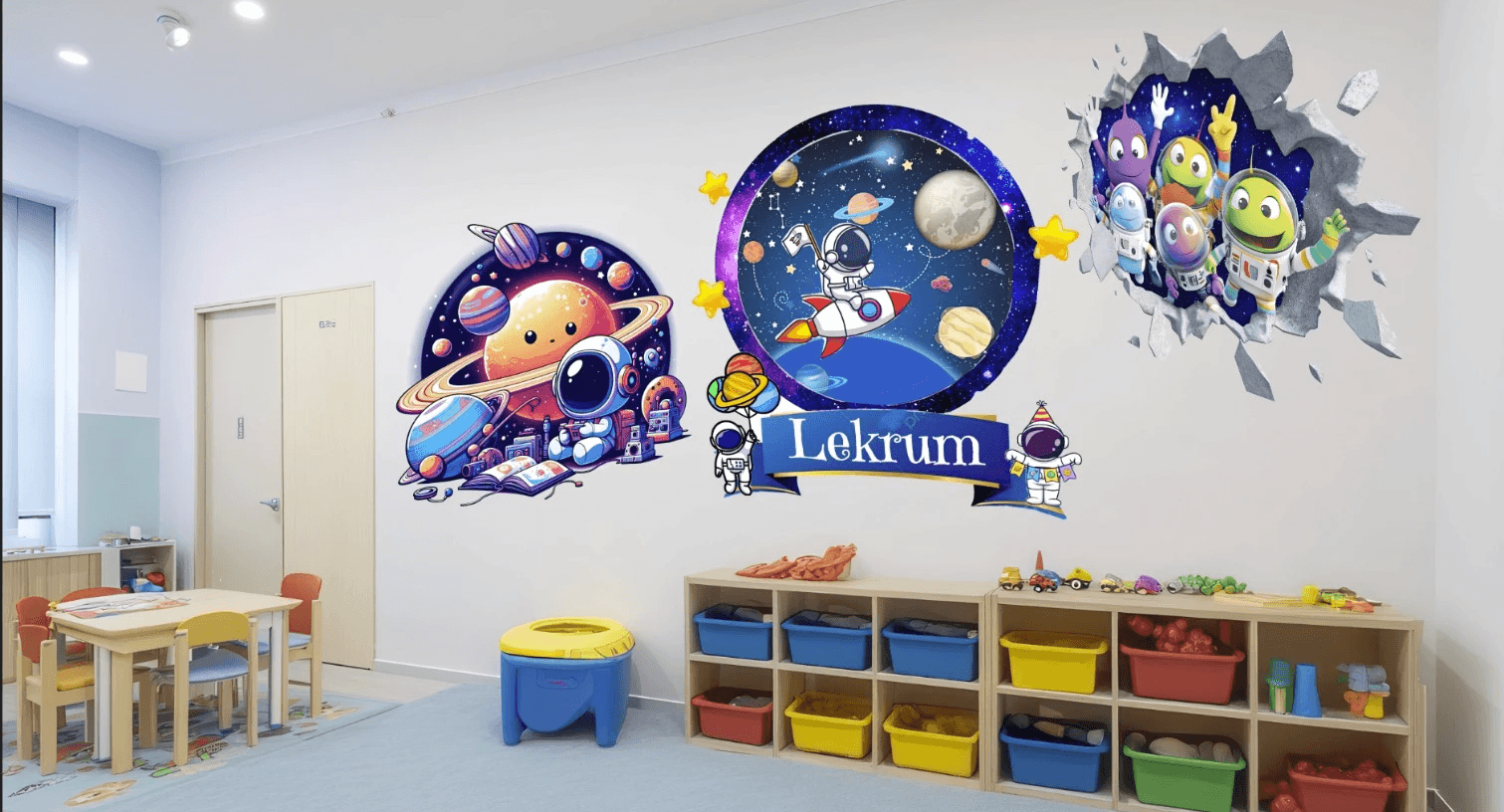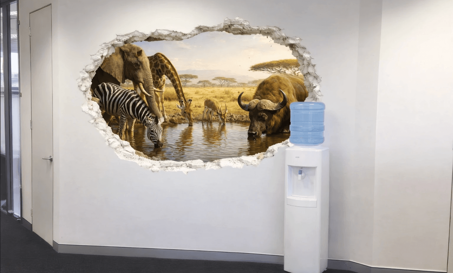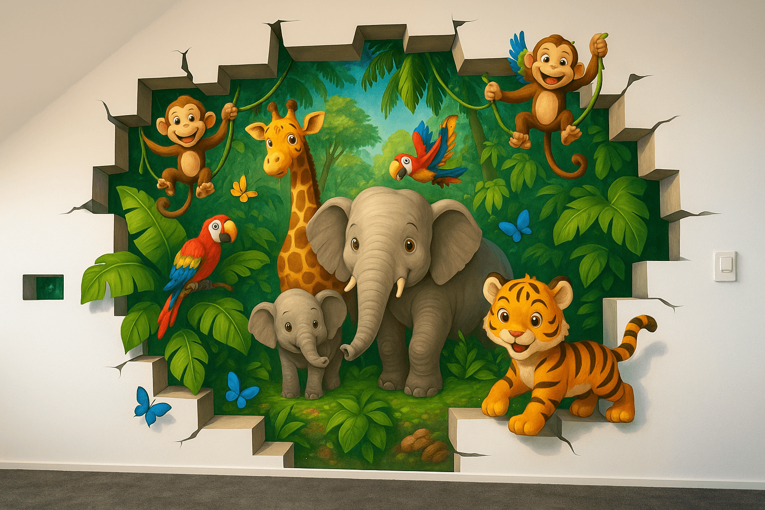 Vi kan printa på de flesta släta och fasta ytor som målade väggar, gips, glas, kakel, träpaneler, metall och betong, så länge ytan är jämn och ren. Vi hjälper alltid till att bedöma om underlaget är lämpligt.